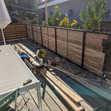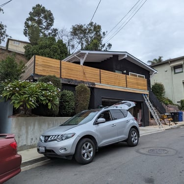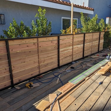 The original railing was outdated, partially unstable, and no longer provided the level of privacy and safety the homeowner needed. We proposed a completely new railing system built with a steel frame and horizontal wooden boards — a combination that is modern, durable, and visually clean, and that fits perfectly with contemporary homes in Los Angeles.