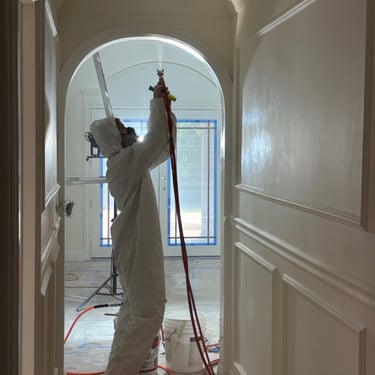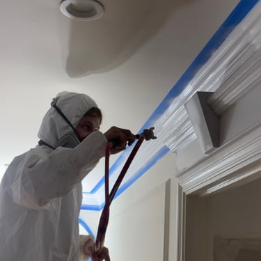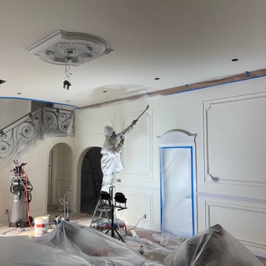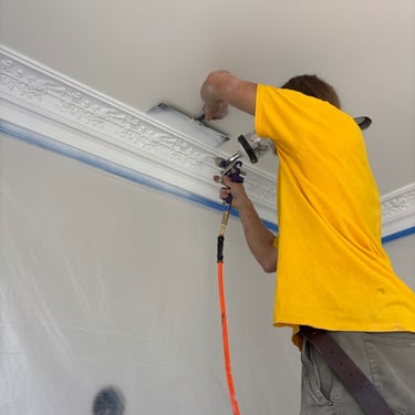 • Wall and ceiling moldings were sprayed with precision, keeping every line crisp.