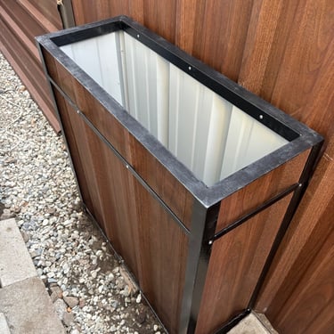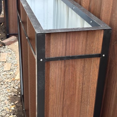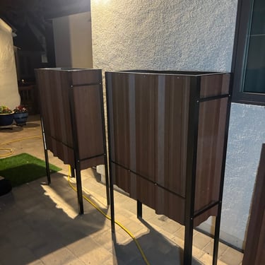 Custom Metal Planter Boxes with Wood-Grain Steel Panels for a Narrow Side Yard in Los Angeles