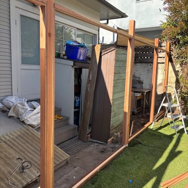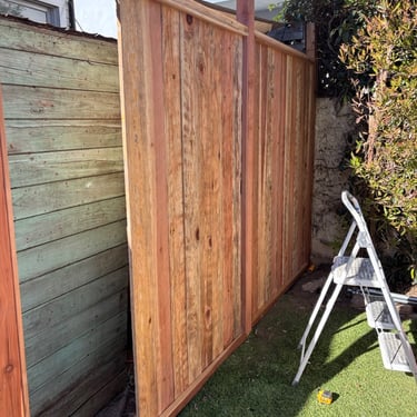This was a full replacement of an old, worn fence with a new custom-built redwood fence, designed specifically for a narrow side yard and dense residential surroundings.
