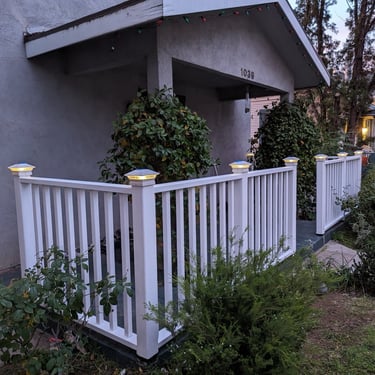 In this project, the ProHands Handyman team completed a full replacement of an aging railing system with new painted redwood railings, adding solar post caps for soft, ambient lighting in the evening.