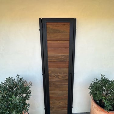 • Integration of horizontal redwood boards, precisely fitted inside the metal structure.